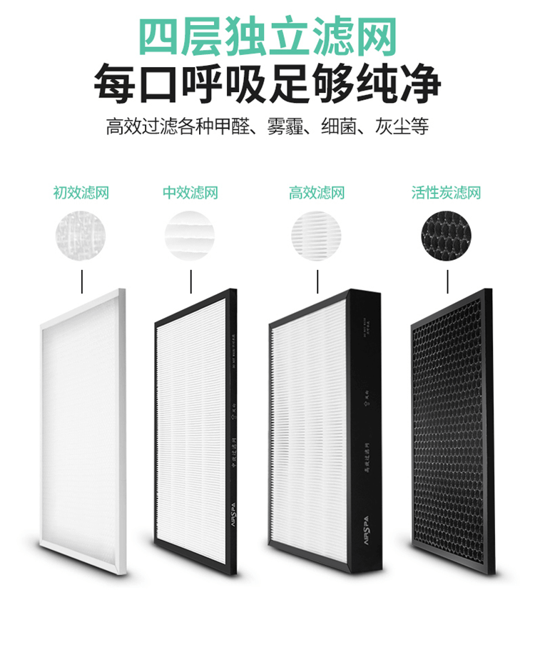 2、超大液晶顯示:自動顯示功能模式、風量大小、室內溫度、濕度、空氣質量、二氧化碳濃度、負離子。高貴、典雅