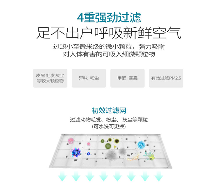 4、五檔風速,開蓋斷電,四重過濾,H13級過濾,過濾效率達99%以上